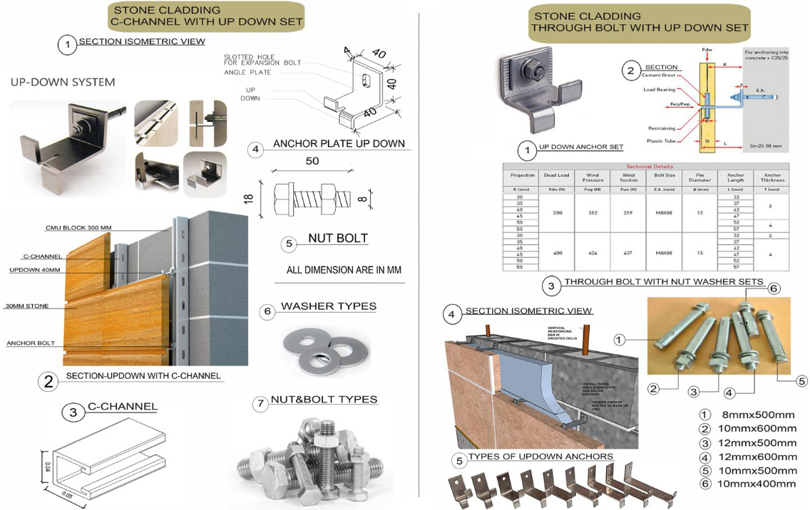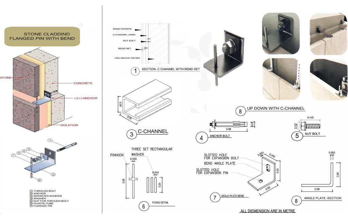 Stone and marble cladding to walls and concrete
